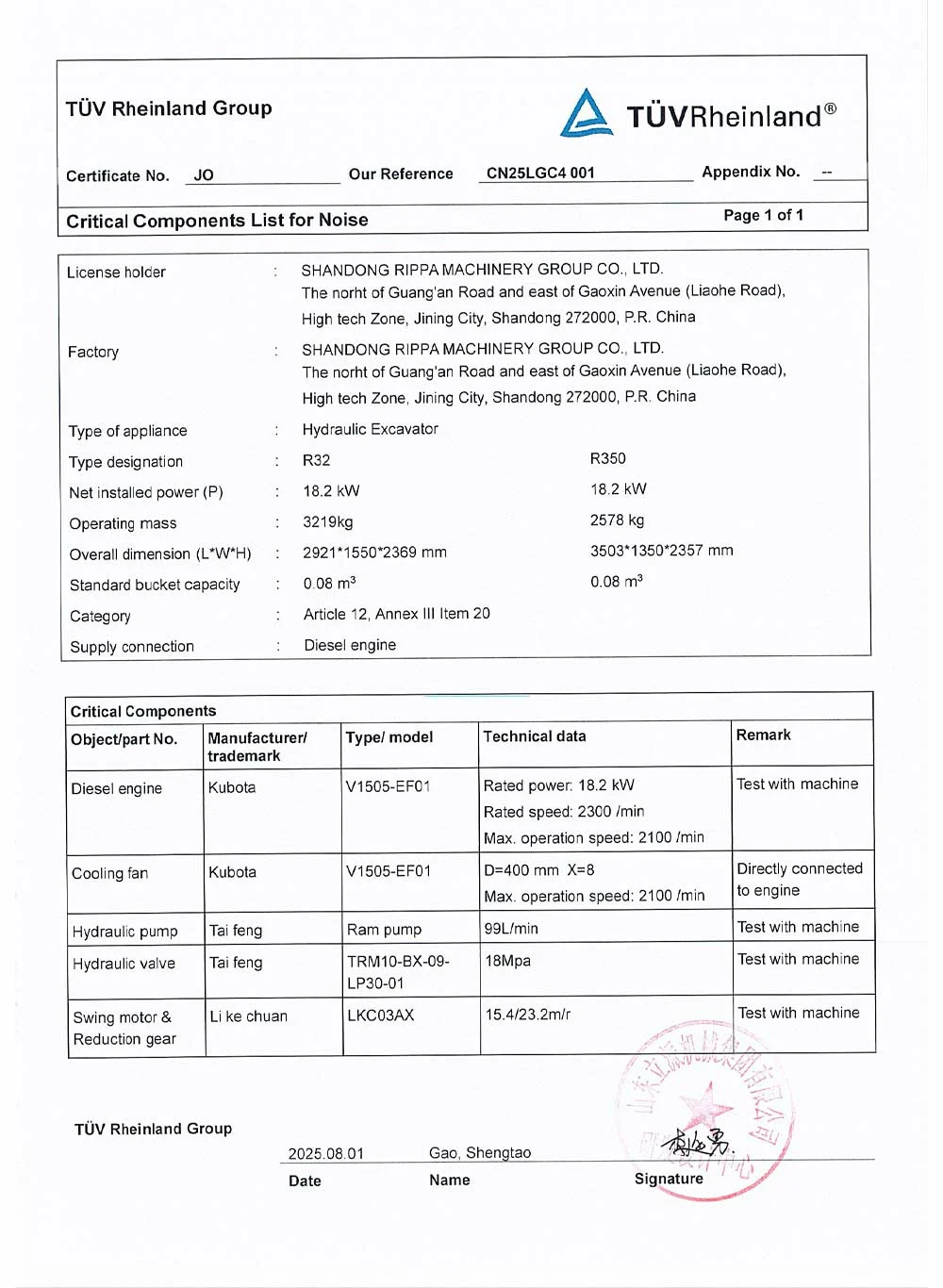 TÜV Certification Query